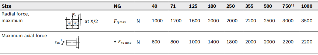 Допустимые радиальные и осевые нагрузки на приводной вал